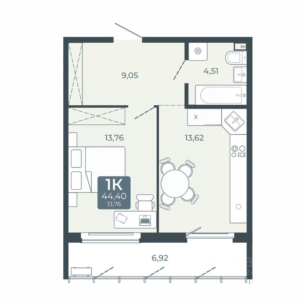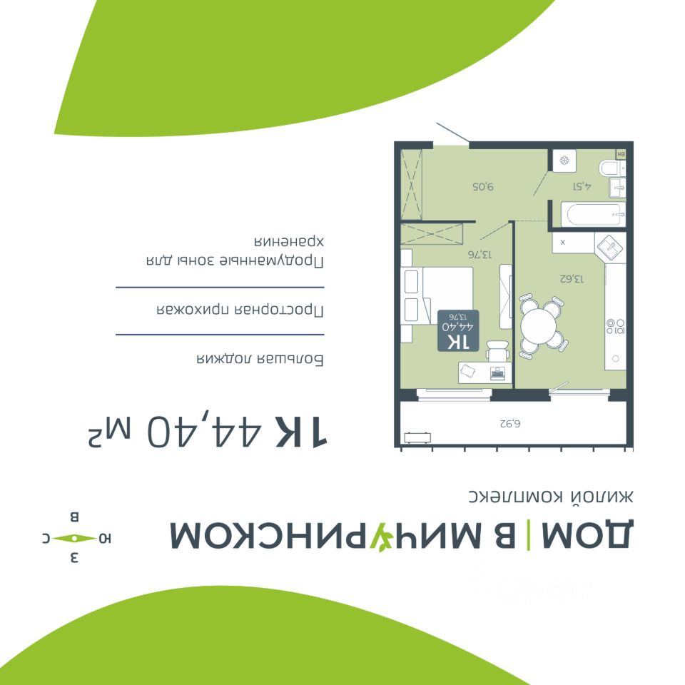 Общая площадь44,4 м²