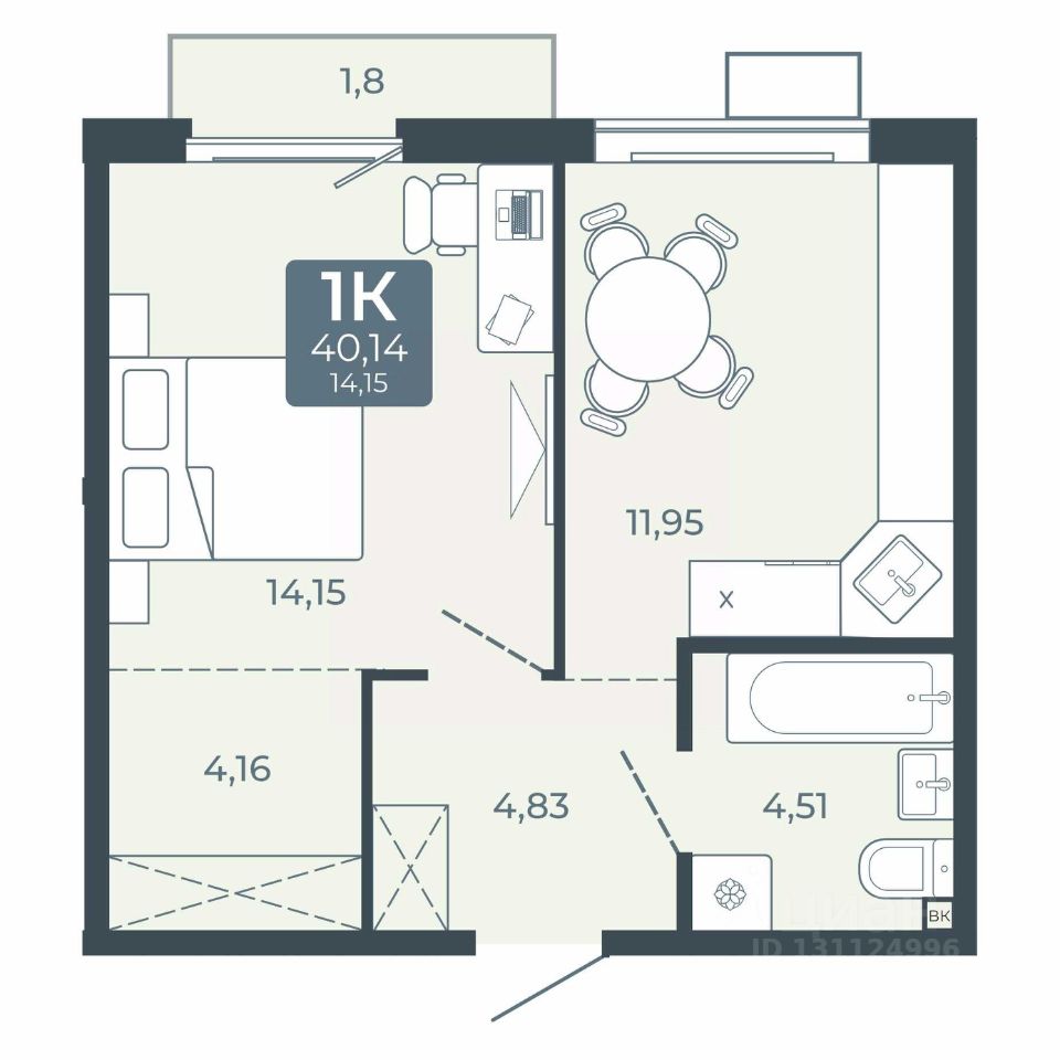 Общая площадь40,14 м²