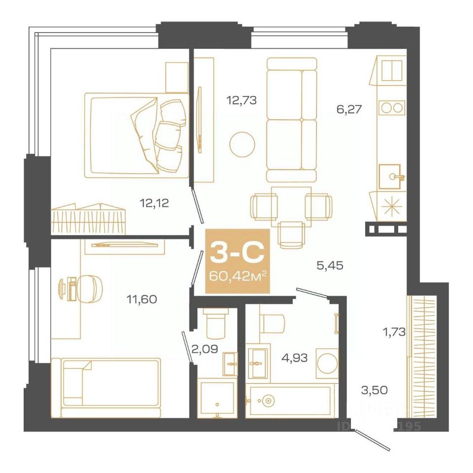 Общая площадь60,42 м²