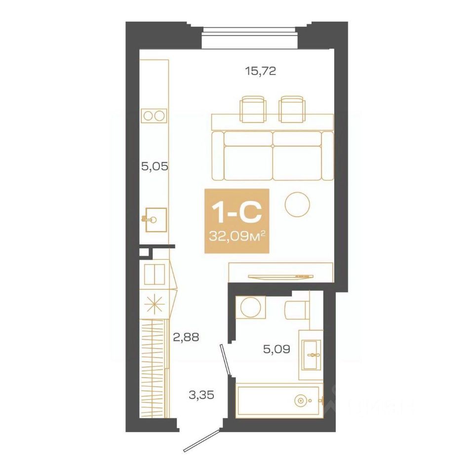 Общая площадь32,09 м²