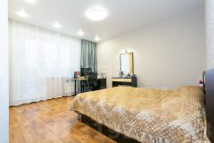 В интерьере квартиры использованы качественные материалы: натяжные потолки в кухне, спальне и коридоре, а в зале — стильные гипсокартонные конструкции. В прихожей предусмотрен большой вместительный шкаф, который поможет организовать ваше пространство.