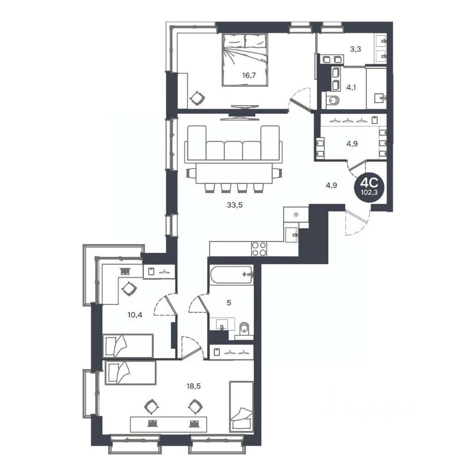 Продаётся 4-комнатная квартира в строящемся доме (Дом 19, секции 2-5), срок сдачи: IV-кв. 2027, общей площадью 102.27 кв.м., на 3 этаже. Расположение, транспортная доступностьНовый жилой комплекс комфорт-класса "Город-парк Ясный Берег" строится на левом берегу реки Обь, но при этом совсем недалеко от центра Новосибирска. Новый микрорайон расположится рядом с проездом Энергетиков, который переходит в Дмитровский мост. Добраться до самого центра мегаполиса совсем несложно: дорога на автомобиле займет всего десять минут в зависимости от загруженности магистралей (расстояние до исторического центра чуть больше 4 км).На общественном транспорте до центральных районов можно доехать за двадцать пять минут (время в пути зависит и от дорожного трафика, от выбранного маршрута и точного места назначения). В шаговой доступности от ЖК "Город-парк Ясный Берег" расположена остановка "Мост", откуда курсируют автобусы и маршрутные такси в разные районы Новосибирска.Рядом с новым ЖК проходят крупнейшие транспортные артерии города Октябрьский мост, проезд Энергетиков, улицы Ватутина, Котовского, Станционная и Немировича-Данченко, так что добраться в любую точку города не составит труда как на машине, так и на общественном транспорте.ИнфраструктураЛенинский район, где возводится "Ясный Берег", считается престижным, так что уже сейчас новые владельцы квартир города-парка смогут наслаждаться комфортной городской жизнью в тихом микрорайоне. В шаговой доступности: детские садики, общеобразовательные школы, магазины, аптеки, сетевые супермаркеты, кафе, аптеки, медицинские учреждения. За пять минут можно доехать до строительного гипермаркета "Леруа Мерлен". Вокруг много мест для отдыха, занятий спортом, прогулок с детьми.Впрочем, согласно концепции, в недалеком будущем жителям "Города-парка Ясный Берег" не понадобится часто покидать пределы любимого микрорайона, поскольку новый жилой комплекс будет представлять собой "город в городе". На территории ЖК будет большой парк с пешеходными и велосипедными дорожками, местами для отдыха, игровыми зонами. Отличительной особенностью станет детская гоночная трасса точный аналог сочинской "Формулы-1".На территории "Города-парка Ясный Берег" построят детские площадки с современным игровым оборудованием, школы, развивающие секции и кружки, детские сады (один построен и уже работает). В городе-парке будут и огороженные места для курения, и территории для прогулок с домашними питомцами. В микрорайоне предусмотрено много зон с wi-fi.Надежность застройщикаЗастройщиком проекта является СК "Аква Сити", основанная в 2012 году. Генеральным подрядчиком компания "Метаприбор". В 2016 году "Метаприбор" занял первое место в области по объемам введенного в эксплуатацию жилья (благодаря своевременной сдаче двух корпусов в ЖК "Город-парк Ясный Берег").Эти компании осуществляют полный цикл строительства от выбора участков под застройку до внутренней отделки, ввода в эксплуатацию и благоустройству территории новых ЖК.И "Аква Сити", и "Метаприбор" им
