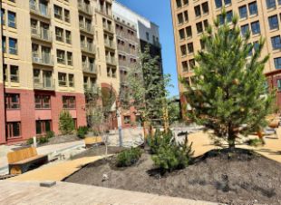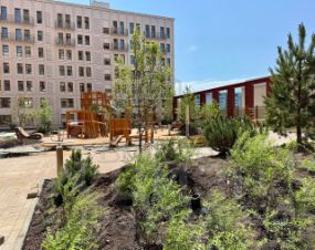 Внутренняя территория квартала — это закрытый двор повышенной безопасности. Он защищен от улицы колоннадой и домами квартала по периметру. Для приватности и безопасности дом поднят на стилобат на несколько метров над уровнем земли, чтобы было безопасно, спокойно и тихо. Никаких машин и посторонних: только вы, ваша семья и соседи. Здесь приятно жить и гулять! Во дворе запланирован пешеходный бульвар с аллеями и дорожками. Вдоль них будут расти сибирские пылепоглощающие кусты и невысокие деревья. Ведь здорово, когда двор-сад прямо у вас под окном.