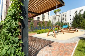 Приватный двор жилого комплекса огражден от улиц, а второй этаж защищен от шума игровых площадок ковром из крон деревьев.