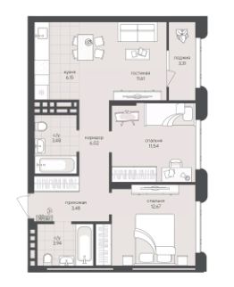 Общая площадь62,65 м²