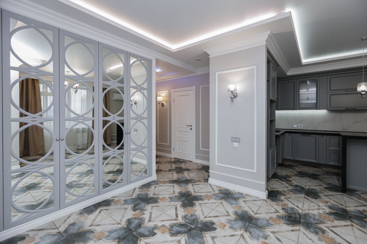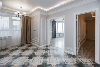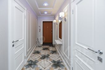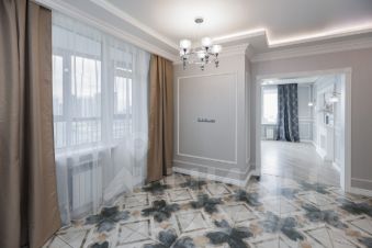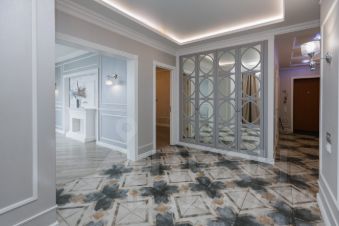 В квартире выполнен дизайнерский ремонт, дизайн каждой комнаты объединяет функциональность, современные решения. В коридорах, гардеробной, кухне выложен дорогой керамогранит фабрики Cir Serenissima, это имя неотрывно связано с итальянской плиткой класса люкс. Ванная/душевая комната выложены в изящной плитке с невероятной текстурой испанской фабрики PAMESA. Во всех комнатах использованы стильные обои Шведского бренда Borastapeter. Ламинат французского бренда, 13 мм. В отделке квартиры использованы материалы бренда Европласт. Шкафы во всей квартире сделаны по дизайн-проекту, выполнили заказ фабрика Альфа-дизайн. Большая кухня является визитной карточкой квартиры, изготовлена из сборного МДФ вручную по типу натурального дерева, окрашена по каталогу Rall, с каменной столешницей включая многофункциональный островок (установлена в середине 2022 года, с 2024 года в квартире не проживали). Все петли, доводчики, корзины дорогих брендов Blum и др. Фурнитура ручки и кнопки - итальянский бренд Giusti. В кухне встроена мощная вытяжка Bosh. Кондиционер Harier с функцией дистанционного включения, обеззараживающей лампой, объем охлаждения до 70 кВ. Также дизайнерское решение, соединение большой кухни. Потолочная люстра бренда Arte Lamp MANTOVA. Также имеется 2 санузла. В 1. санузле установлена инсталляция Grohe, унитаз Jika, гигиенический душ, раковина бренда Color&Style. Во 2. ванна бренда Relesan 80 см с врезанным каскадным смесителем-лейкой бренда Garda.