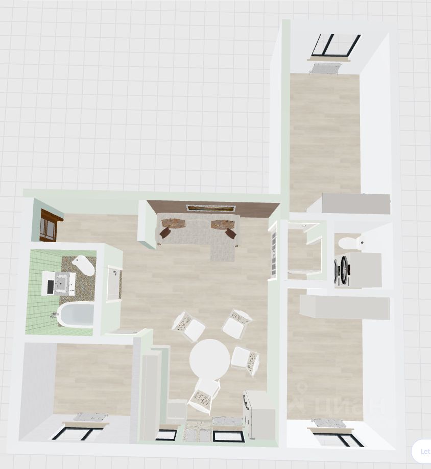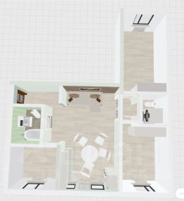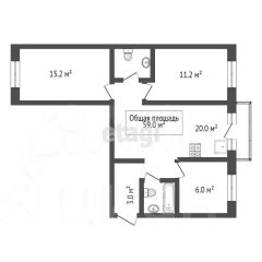 - самая большая комната 20 м2 превращена в кухню-гостиную, остальные 3 комнаты-спальни 13 м2, 11 м2, 6 м2 изолированные.