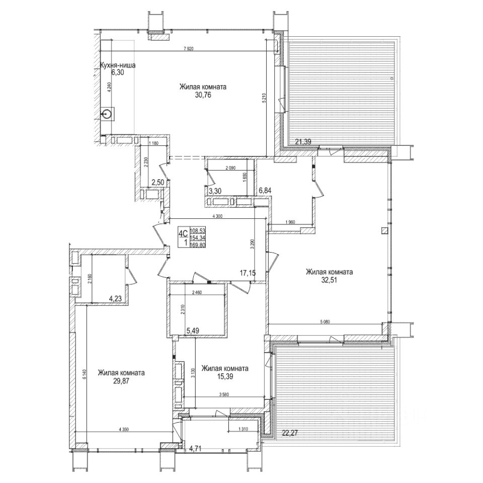 154,3 м²