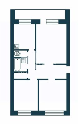 Площадь комнат - 12.4, 10.3 и 17.7 м2. Кухня 7.7 м2