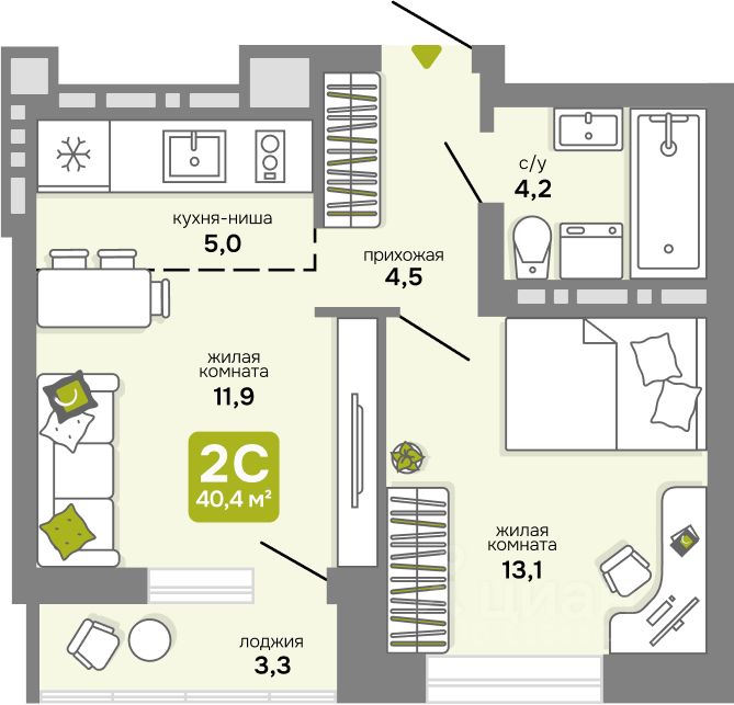 Общая площадь40,4 м²