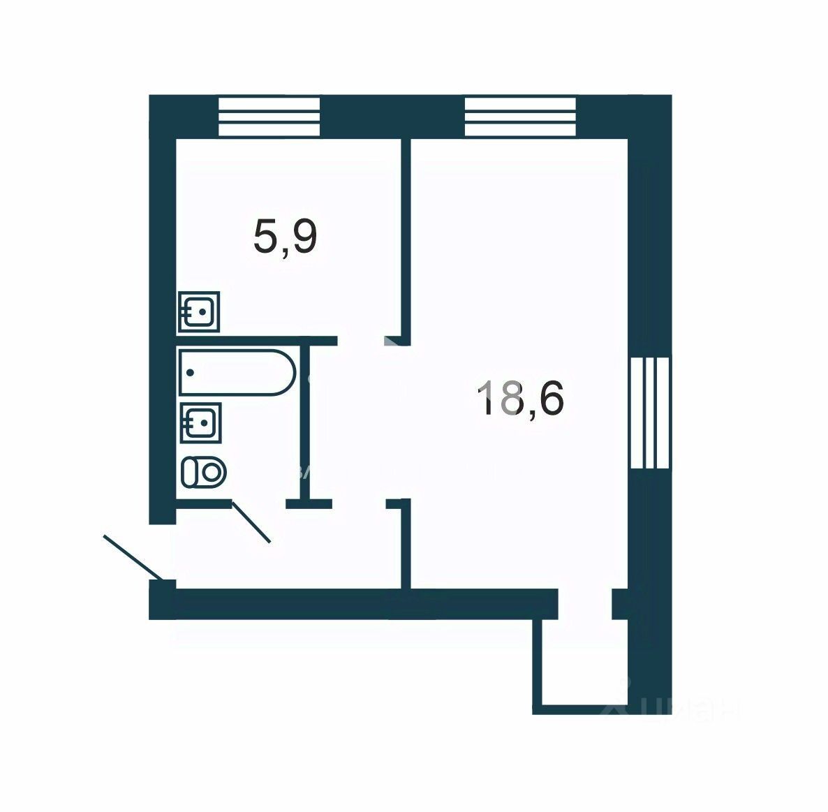 - Просторная комната 18,6 кв. м.