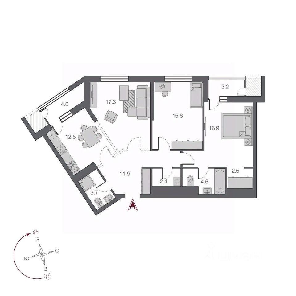 Продаётся 3-комнатная квартира в строящемся доме (БС 1,2 - 2 этап), срок сдачи: IV-кв. 2025, общей площадью 96.3 кв.м., на 24 этаже. Квартал открытий Беринг", с любовью созданный группой компаний Новый мир", состоит из четырех зданий переменной этажности и расположен на первой береговой линии реки Обь в старом центре Новосибирска.