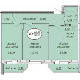 70,6 м²