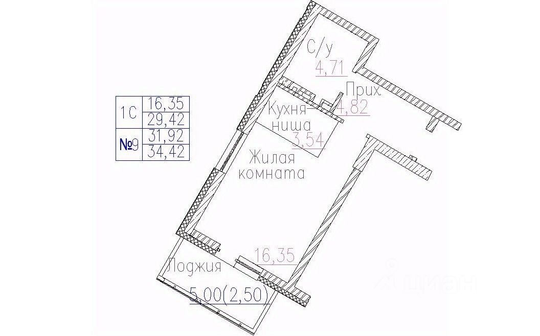 34,42 м²