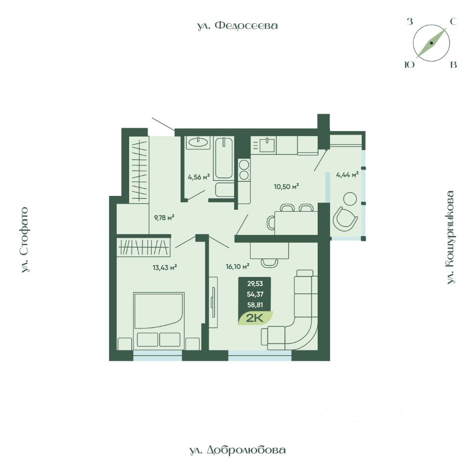 Продаётся 2-комнатная квартира в строящемся доме (Дом 1), срок сдачи: II-кв. 2026, общей площадью 56.59 кв.м., на 2 этаже. Новый жилой дом "Мичурин" от Специализированного застройщика "КМ" расположен в Октябрьском районе Новосибирска на ул. Стофато.