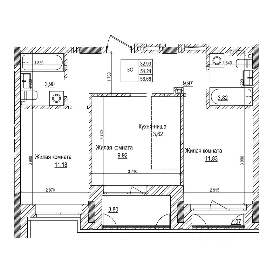 Продаётся 3-комнатная квартира в строящемся доме (Дом 2), срок сдачи: IV-кв. 2027, общей площадью 54.2 кв.м., на 21 этаже. "Комсомольский проспект" - новый жилой комплекс в центре города от компании "Сибирьинвест".