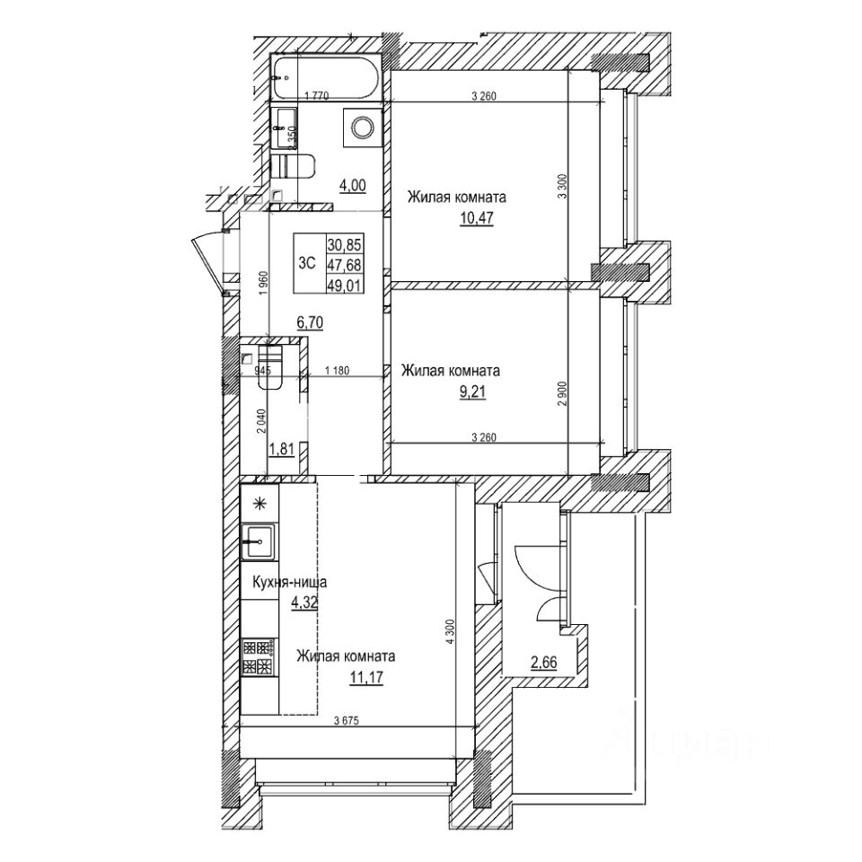 Продаётся 3-комнатная квартира в строящемся доме (Дом 2), срок сдачи: IV-кв. 2027, общей площадью 47.6 кв.м., на 2 этаже. "Комсомольский проспект" - новый жилой комплекс в центре города от компании "Сибирьинвест".