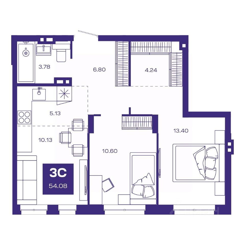 Продаётся 3-комнатная квартира в строящемся доме (Дом 2), срок сдачи: III-кв. 2026, общей площадью 54.08 кв.м., на 3 этаже. Новый жилой комплекс "Базилик" от застройщика "Группа Мета" расположен в рп. Краснообск Новосибирской области на ул. Восточная.