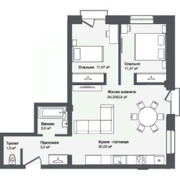 Общая площадь64,16 м²