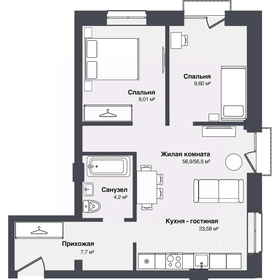 56,86 м²