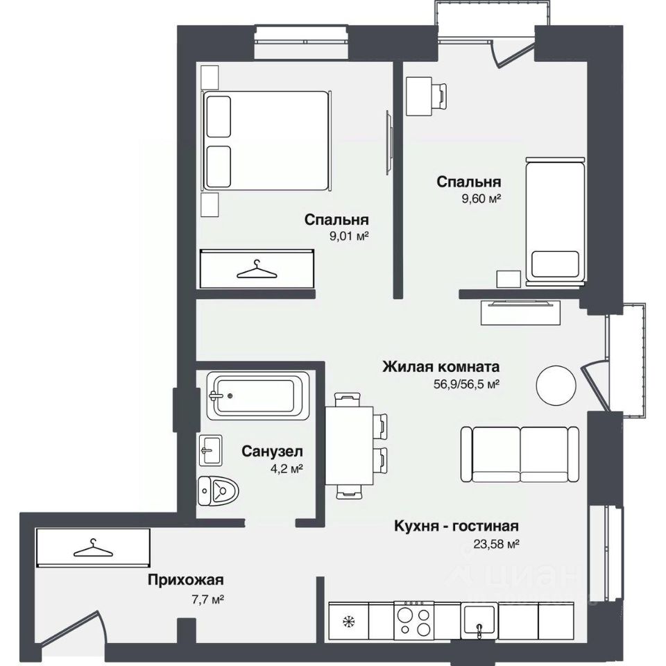 56,86 м²