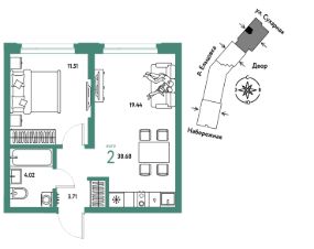 Продается 2комнатная квартира на 27 этаже от застройщика Страна Девелопмент. Площадь квартиры 38,68 кв. м.