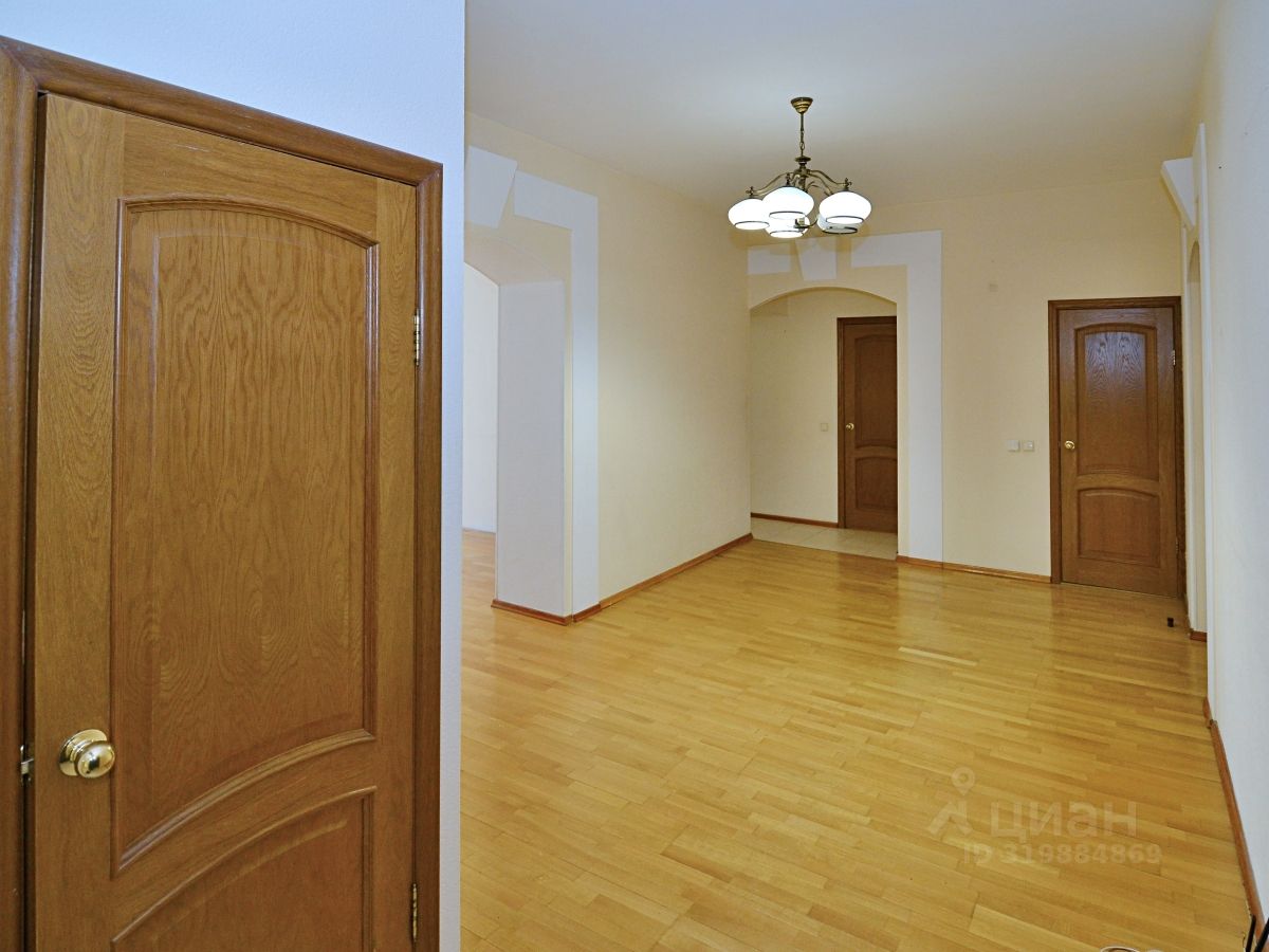 На площадке всего две квартиры с просторным тамбуром. Общая площадь квартиры составляет 109,4 квадратных метра, планировка на две стороны с балконом с одной стороны и лоджией с другой. Площадь гостиной комнаты составляет 27,4 метра, форма близка к квадратной - варианты зонирования комнаты для новых собственников достаточно обширны. Спальни имеют площадь 17,2 с выходом на застекленный балкон и 13,1 квадратных метра соответственно. Два санузла расположены удобно - хозяйский санузел расположен рядом со спальнями, а гостевой вместе с двумя кладовками является логическим продолжением прихожей. Из просторной кухни, также близкой к квадрату формы, площадью 13,5 квадратных метра есть выход на застекленную лоджию. Домом управляет ТСЖ, следовательно коммунальные услуги во первых экономичны, а во вторых качественны. Внутридомовая территория облагорожена и закрыта, есть автоматические ворота, видеонаблюдение, всегда есть место для парковки.