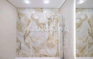 - в ванной комнате уютную атмосферу сознают приятные детали от встроенной душевой (Strеаm Limе) до роскошного мрамора "Рrimо Оnyх" в бежевых тонах.