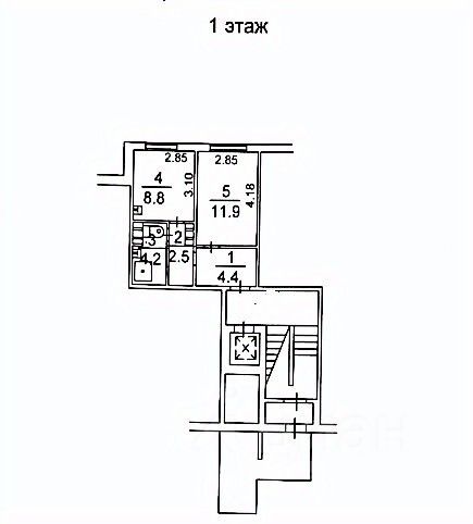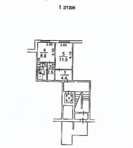 Комнаты: 8,8 кв.м. + 11.9 кв.м.