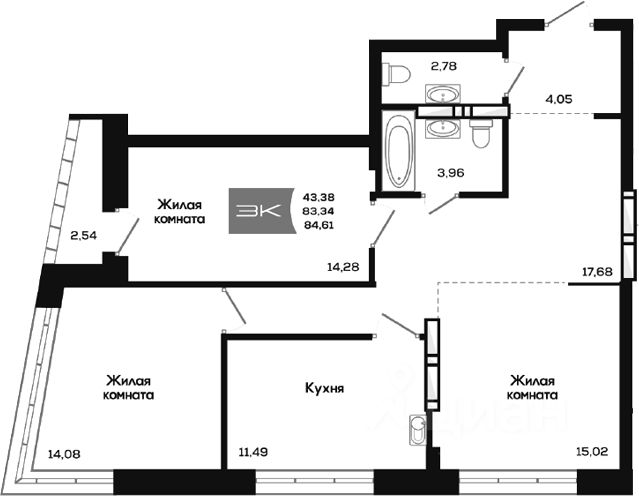 Общая площадь83,34 м²