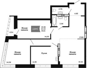 Жилая площадь43,4 м²