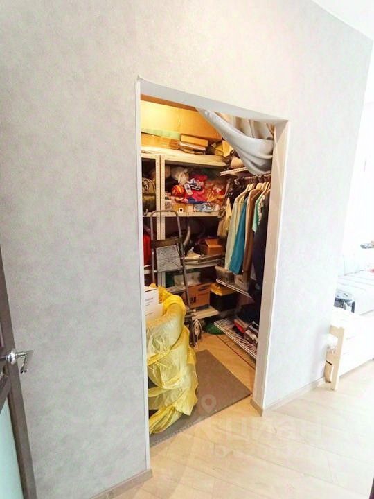 Изолированная спальня 16 кв м и удобная гардеробная со встроенными полками.