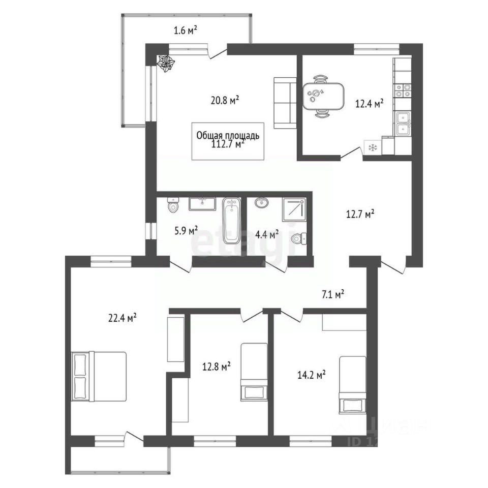 Квартира выполнена в светлых тонах. Планировка включает четыре изолированные комнаты, два совмещенных санузла и два застекленных балкона. Окна выходят на две стороны. Встроенные шкафы и кухонный гарнитур остаются новым владельцам.
