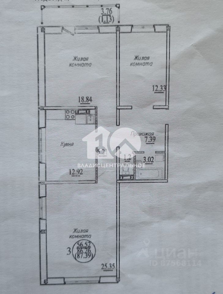 Общая площадь указана с учетом балкона и подсобного помещения.