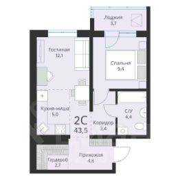 Общая площадь43,5 м²