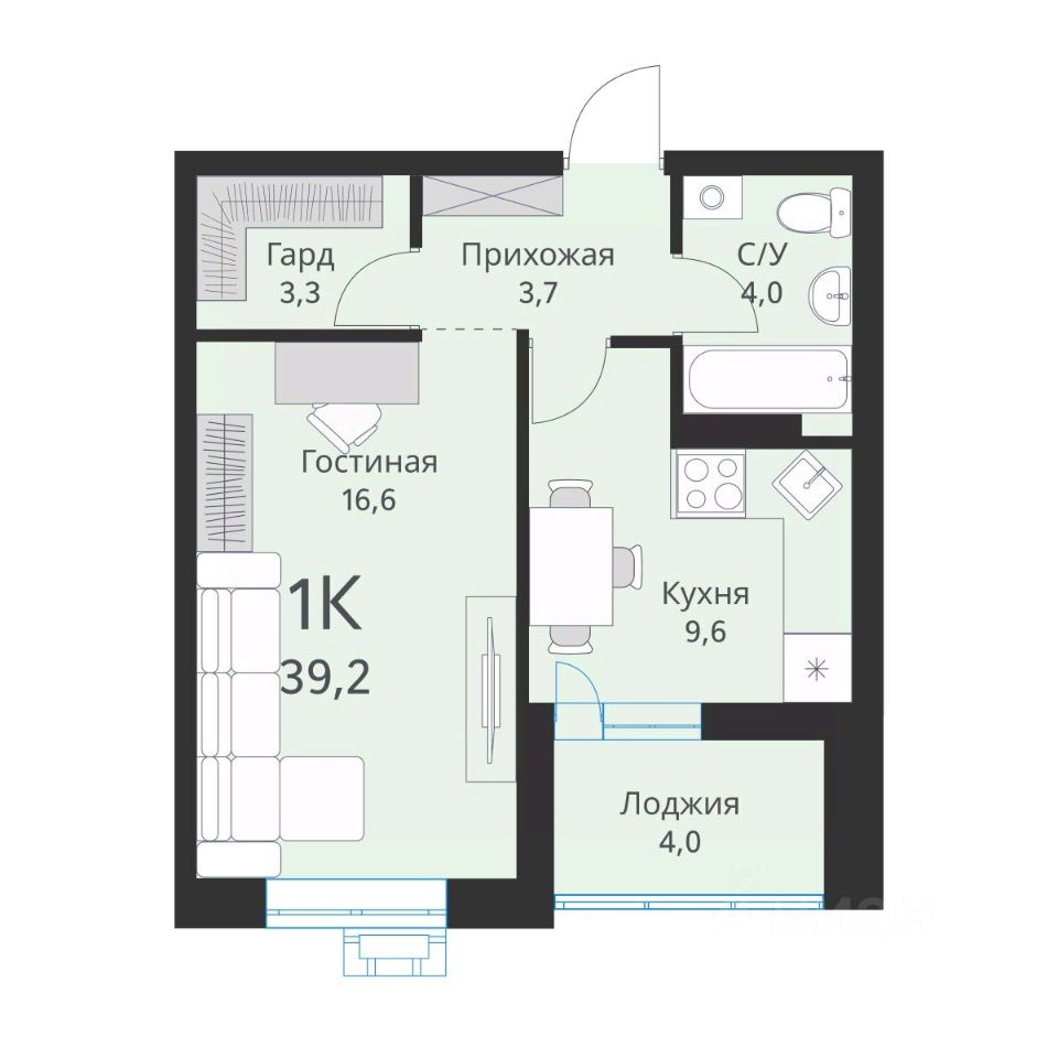 Общая площадь39,2 м²