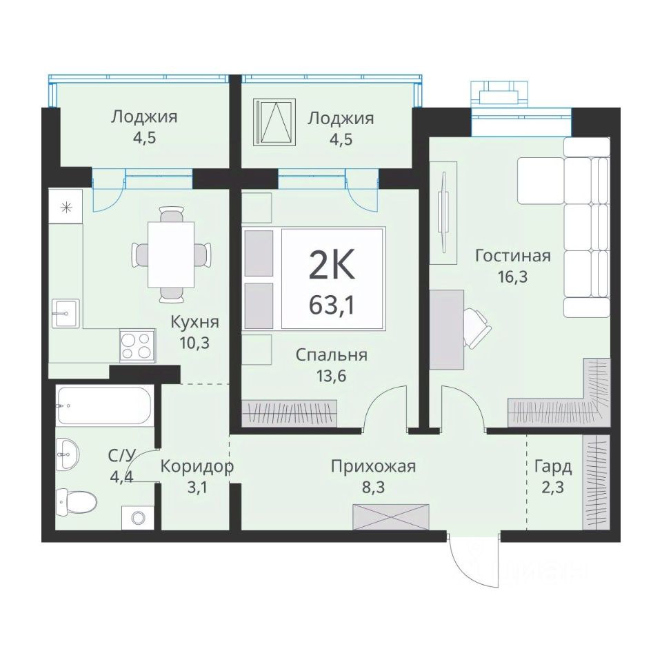Общая площадь63,1 м²