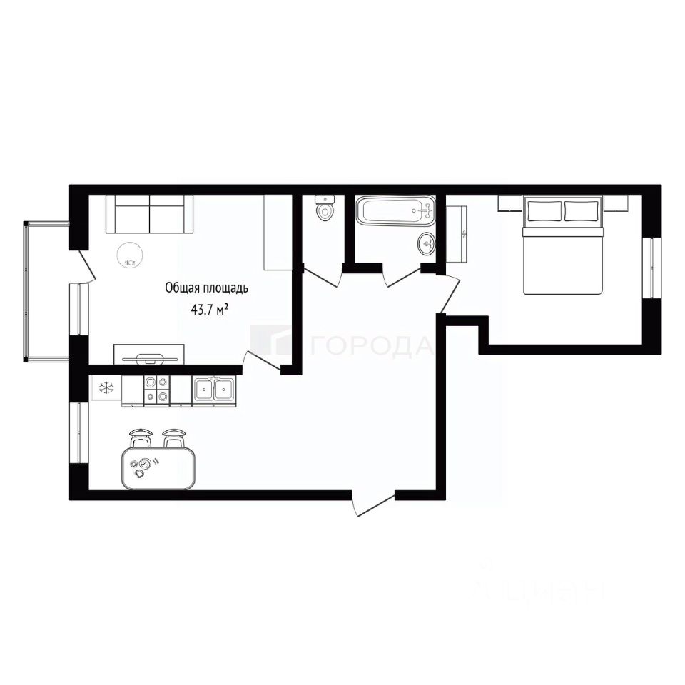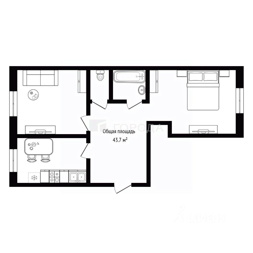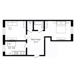Общая площадь квартиры составляет 43,7 кв. м. Расположение комнат "трамвайчиком", окна выходят на улицу и во двор. Есть балкон. В квартире можно сделать ремонт под любой вкус и кошелек - самое главное, пол не скрипит, стены ровные.