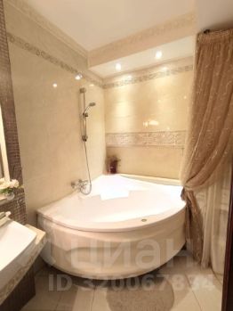 Квартира оборудована качественной сантехникой большая угловая ванна, раковина на столешнице, навесной унитаз, гигиенический душ. Имеется проточный водонагреватель (горячая вода всегда). В ванной теплый пол. Интерьер украшен красивыми светильниками из натуральных материалов (все остается). Двери в ванной и в спальне из натурального массива дерева с матовым стеклом. выполнены мастером на заказ.