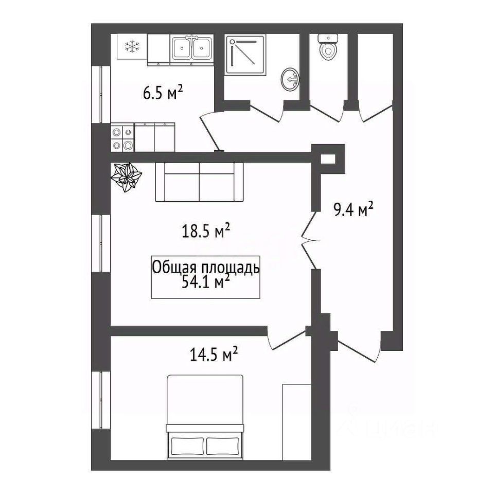* Площадь: 54,1 кв.м — просторно для семьи.