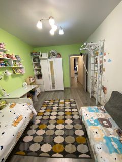 Продается с мебелью и бытовой техникой. Гостиная 18 кв.м, детская 14 кв.м , спальня с лоджией 10 кв.м. Лоджия застеклена. Большой коридор-холл с шкафом и гардеробной.