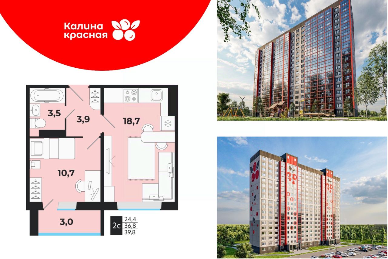 ЖК "Калина Красная" - новый проект застройщика ГК "КПД-Газстрой" в пригороде Новосибирска (12 км, с.Криводановка). Уникальная природная локация - для тех, кто ценит комфорт. Поликлиника, школа, сады - у дома. В шаговой доступности - ДК, школа искусств, детский бассейн, спортивные клубы и секции, магазины. Первый объект жилого комплекса "Калина Красная" — современный 18-этажный жилой дом серии 18С, с усовершенствованной звуко- и теплоизоляцией.Органично вписывается в "зеленую" локацию двор в экостиле - современные спортивные и игровые площадки из натуральных материалов, озеленение: сад из кустов липы, сосны, черемухи, калины, яблони и пузыреплодника. В квартирографии — 11 видов планировок. Cдаются полностью готовыми к новоселью.