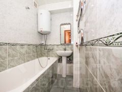 Потолки оштукатурены, на полу в комнатах ламинат, на кухне плитка, в коридоре линолеум. На стенах обои. Двери из массива дерева. Лоджии с пластиковым остеклением.