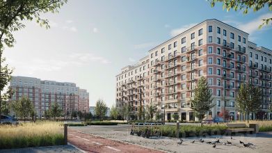 Район "Пшеница" — это квартальная среднеэтажная застройка с закрытыми от машин безопасными дворами. В основу проекта мы заложили три принципа. Первый — разнообразие и плотность. Для нас важно создать среду, где человек в шаговой доступности мог бы получить любой сервис.
