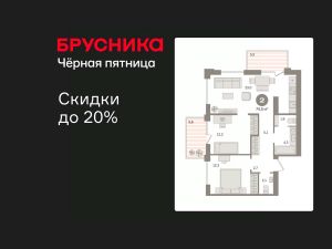 Квартира с кухней-гостиной и двумя спальнями в жилом районе "Пшеница". Особенности планировки: второй санузел, вид во двор, разнесённые спальни, предчистовая отделка, балкон.