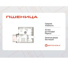 Квартира с кухней-гостиной и одной спальней в жилом районе "Пшеница". Особенности планировки: окна в пол, предчистовая отделка, балкон.