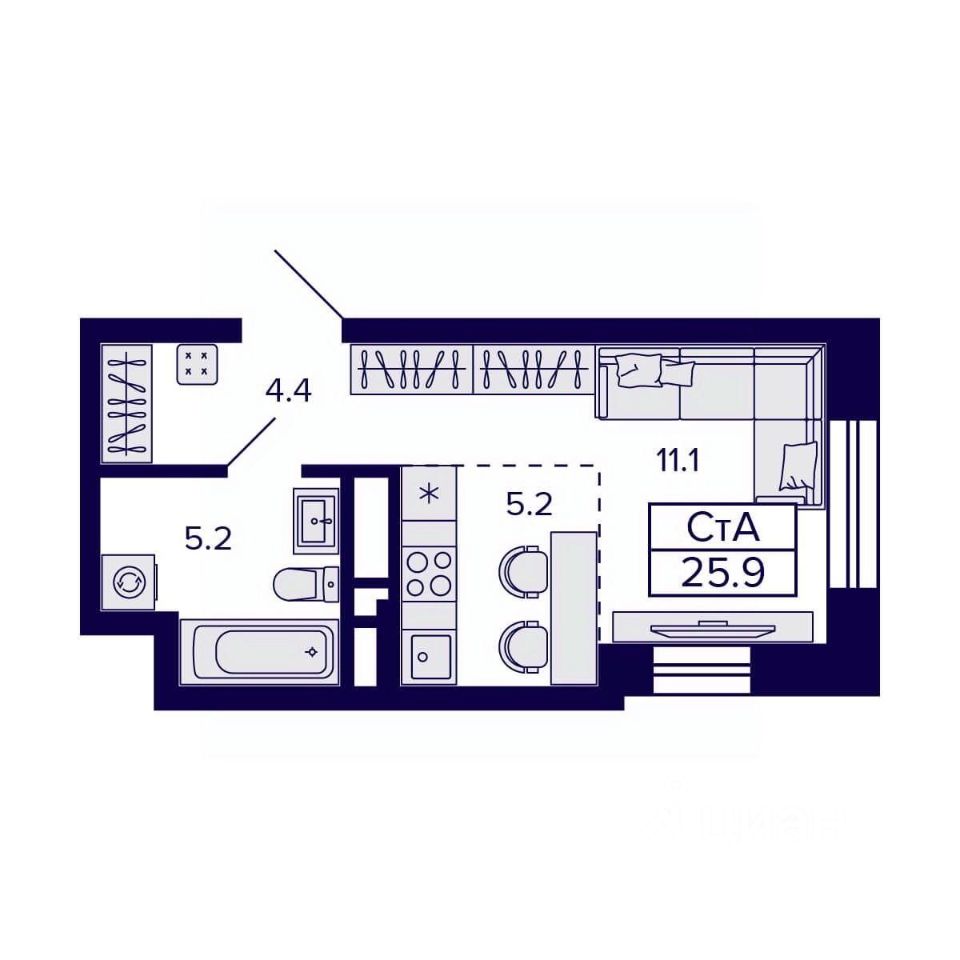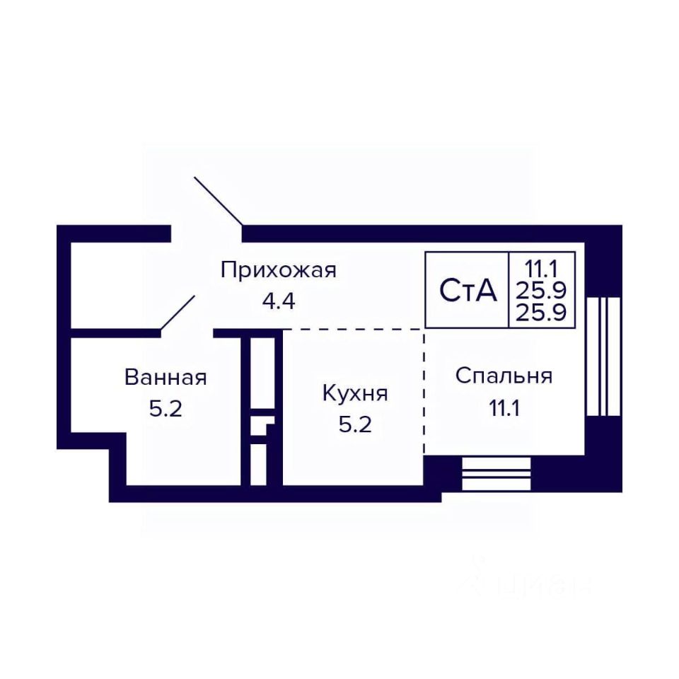 Общая площадь25,9 м²