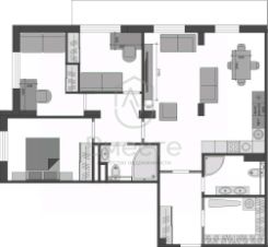 В квартире функциональная планировка — гостевая зона (уютная гостиная и стильная кухня) и приватная зона (три отдельных спальни и санузел с гидромассажной ванной). Особую атмосферу и уют в гостиной создают мягкий теплый свет и удобный стильный диван. Также здесь предусмотрена система кондиционирования воздуха и несколько сценариев освещения. Из гостиной - выход на балкон 12.1 кв.м, который остеклен, утеплен и на нем организована зона отдыха и цветочный садик. Утром здесь прекрасно выпить чашку ароматного кофе, а вечером фужер вина и любоваться прекрасным видом в сторону центральной части города.