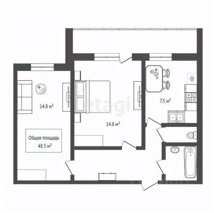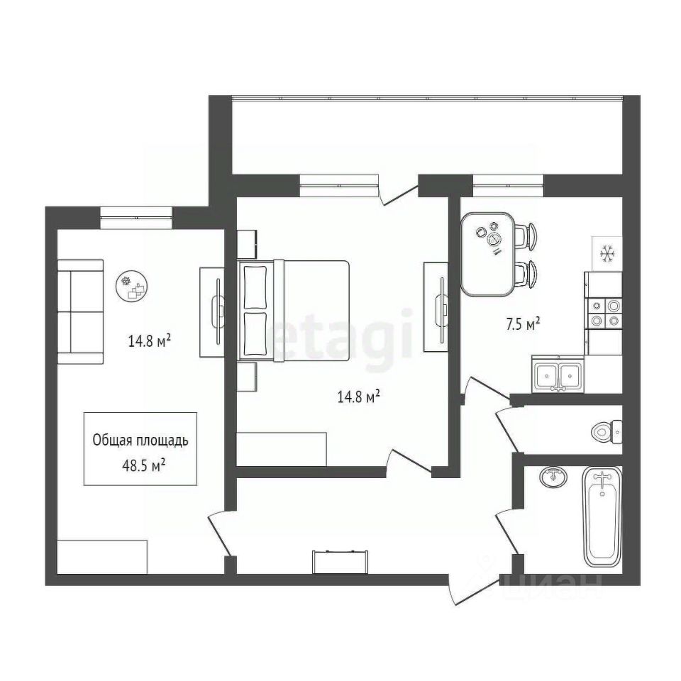 Квартира классической планировки: две изолированные комнаты правильной прямоугольной формы, компактная кухня, раздельный санузел и особенность квартиры - большая остекленная лоджия с окнами на южную сторону. Ремонт косметический: окна пластиковые, санузел в кафеле, заменены трубы и электропроводка. Территория дома огорожена забором.