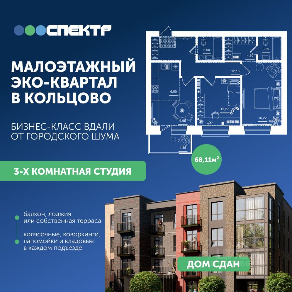 ?Современный малоэтажный квартал в Кольцово в гармонии с природой, где вы будете наслаждаться живописными видами, прогуливаться по благоустроенным аллеям или лесным тропинкам.